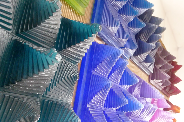 These panels were the start of a new series of work - and a new, modular, way of working. I created the first three panels using traditional lost wax casting, for Bruntnell-Astley's pop-up exhibition, 'The Heat is On'. But during the making process, realised that I could develop a modular system using silicone - avoiding the need for wax. As image 3 illustrates, this new system allowed for more speedy production of many different compositions.